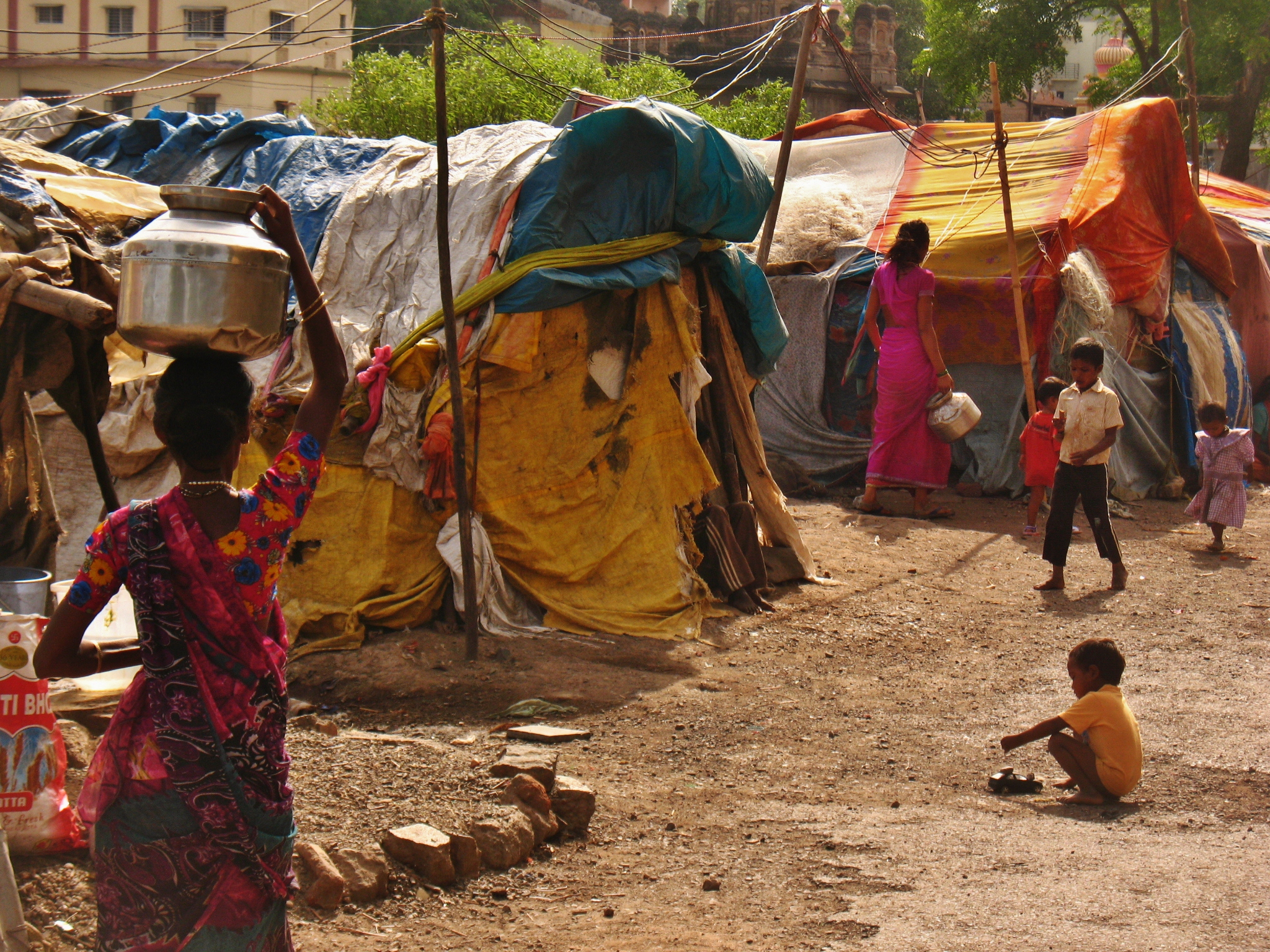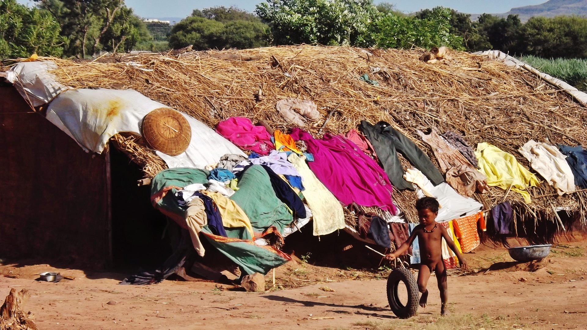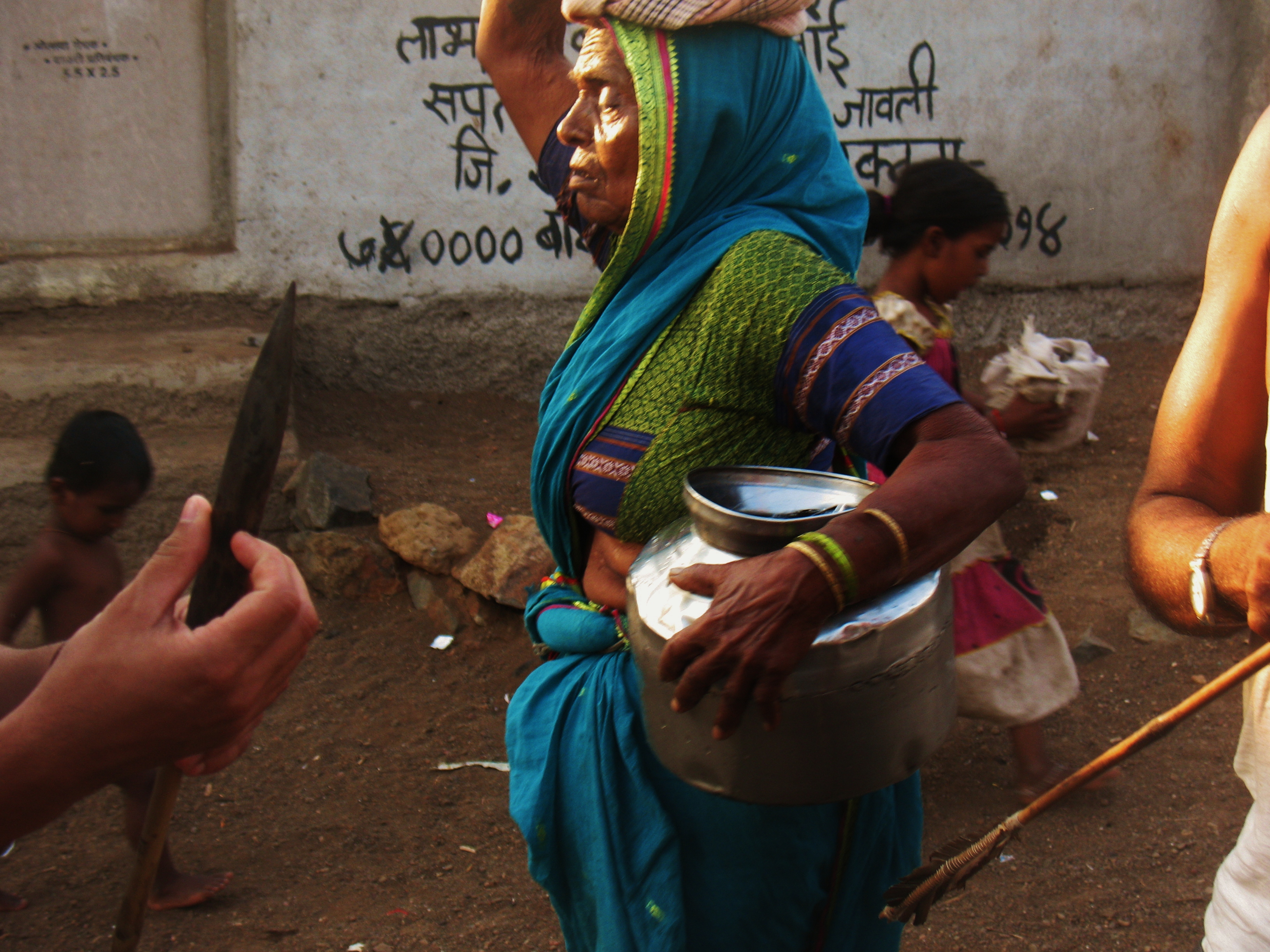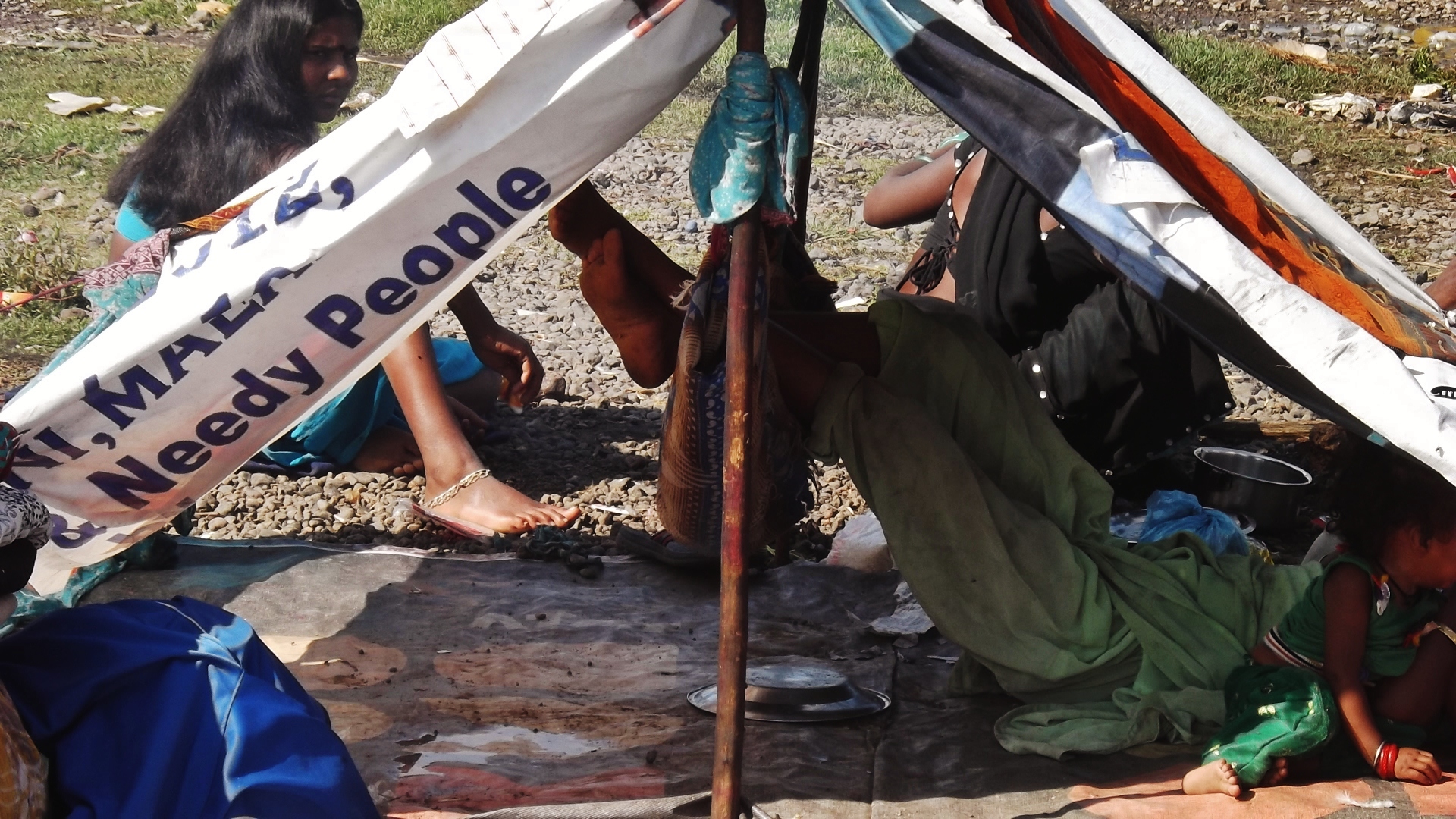 On the city of Wai, a large community lives by the river due to not having any other place to stay. Most of the land in the surroundings of the city are private owned by small farmers or bought by Mumbai business men for development projects. Besides the fragility of their homes, mainly tents made of reclaimed canvas from advertisement banners, they face floods from the river in every monsoon season. The sewage of the whole city comes directly to the riverside where they live in order to be flushed by the river, making them a population prone to diseases and extreme lack of hygiene and sanitation. They have no other place for fishing so they eat the fish they catch on the river, as well as taking bath and washing their clothes and dishes on its waters.