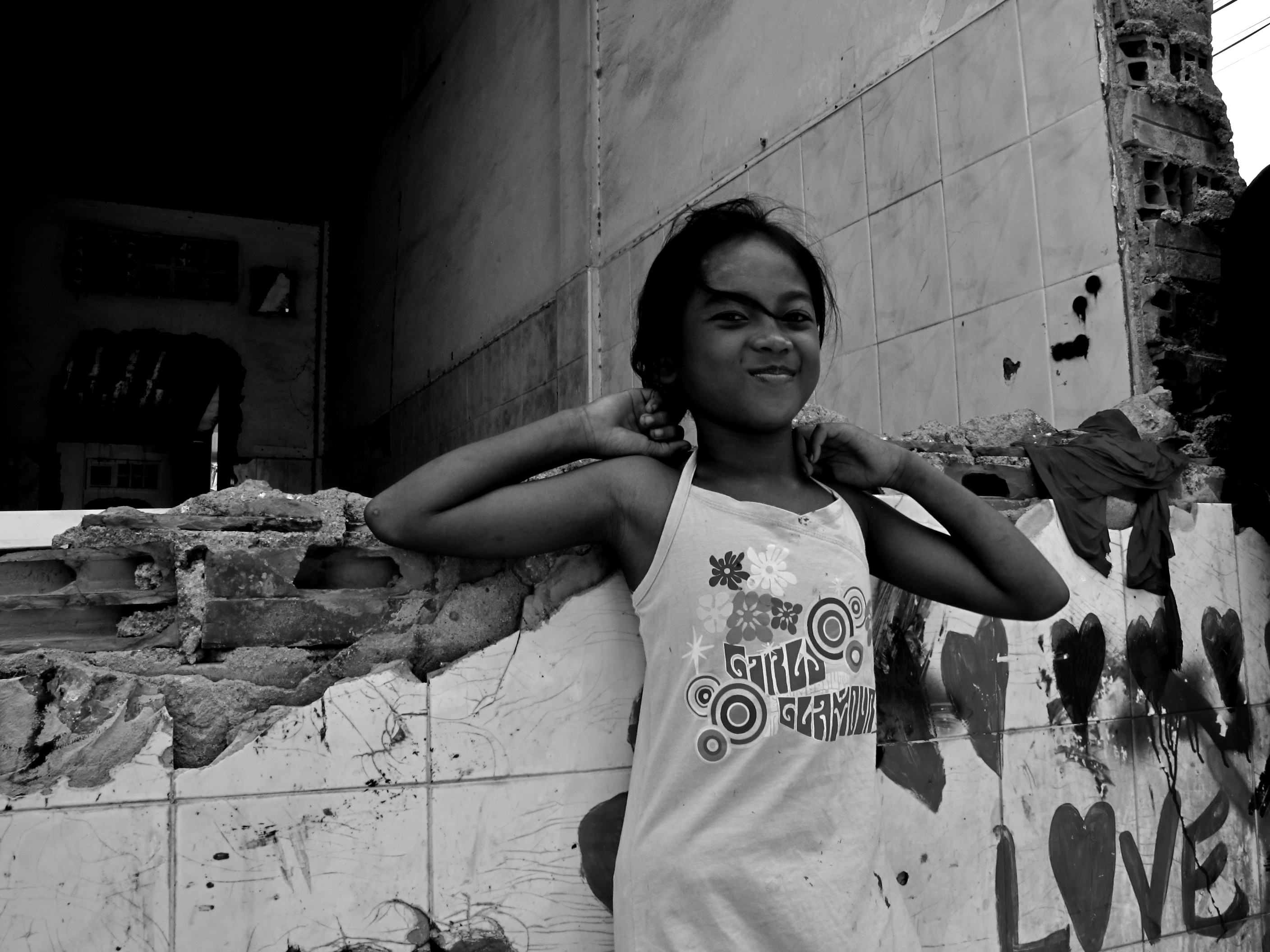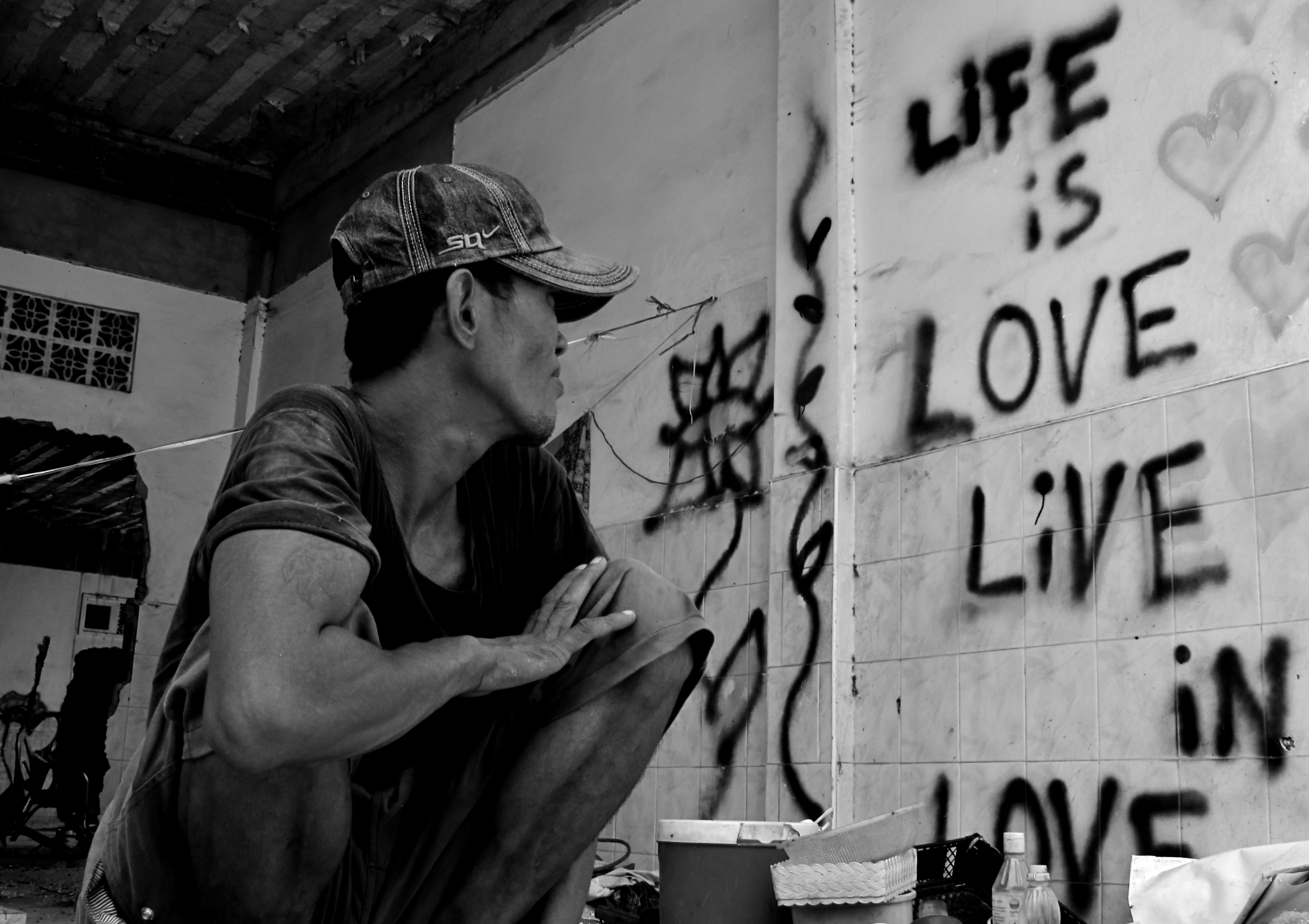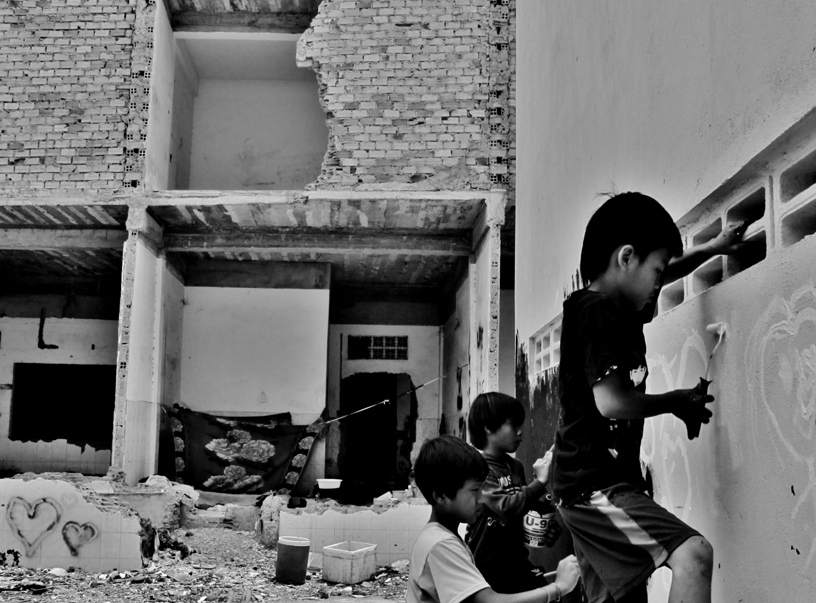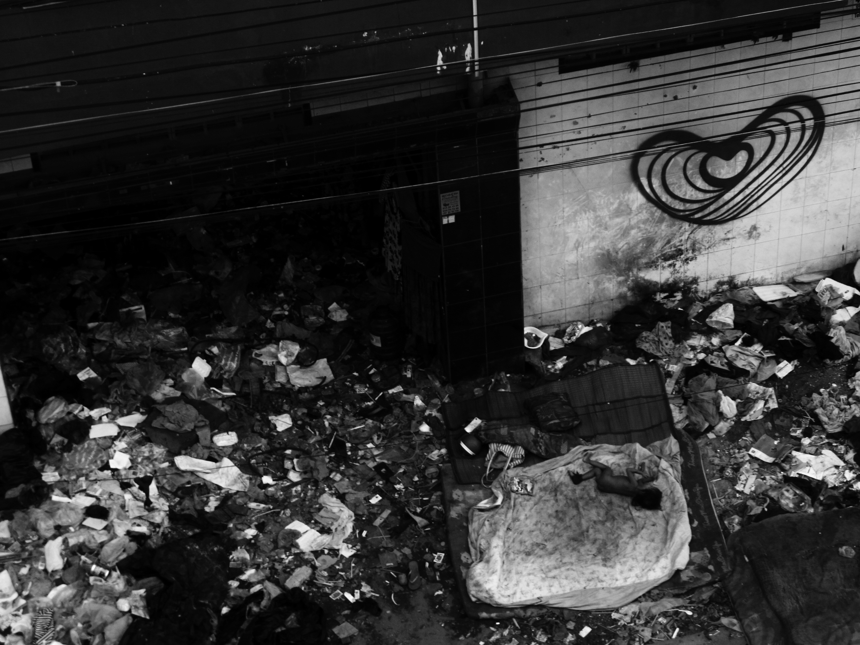 Boeung Kak is a strange place. Located in the center of the cambodian capital of Phnom Penh, it had the unique feature (for a city) of being a neighbourhood built around a beautiful lake. Crowds of young backpacker tourists were used to populate its margins, helping a vibrant local economy and its low-income population. Relaxed environment and sunsets on the lake were the common experience here, until the municipality sold it to a company owned by the wife of a ruling party’s senator. Since 2008 the lake had been filled with sand and is now a construction site for high-end buildings, somehow in standby, while around 4000 families (almost 20.000 people) were forcibly evicted from their homes. Nowadays, most of the tourism industry fled, depleting the local economy and the general mood of the community. Nevertheless, some travelers and expats still come and try to maintain the creative atmosphere that was going on in the old days, with street art still populating many walls. Meanwhile some buildings got vacant, with time and lack of maintenance turning them into shady and forsaken sites. That’s when some underpriviliged families started to live in them. This a glimpse of them and their way of living, in black-and-white as an attempt to balance the color on the walls and the lack of it on the ones living inside them.
