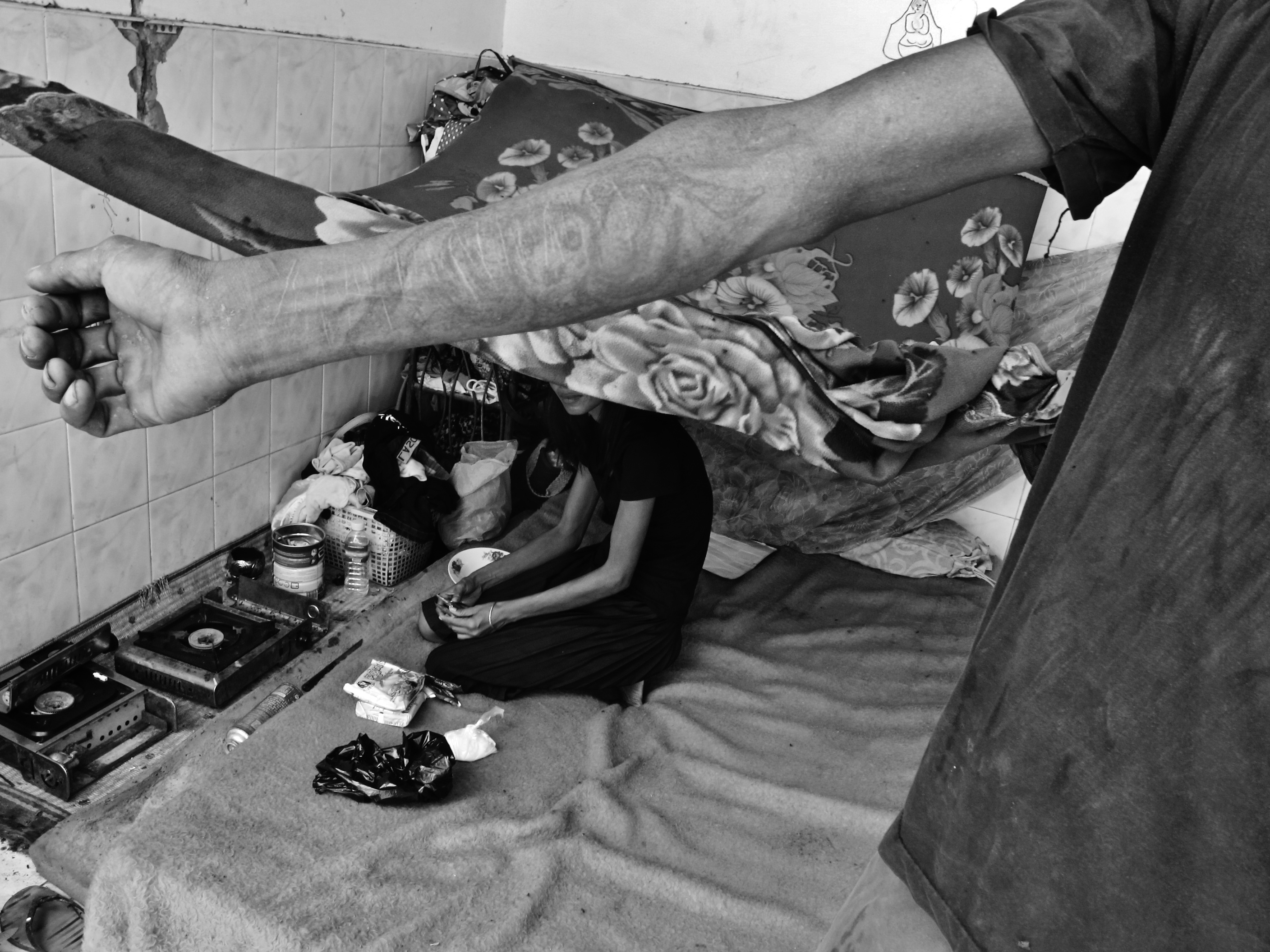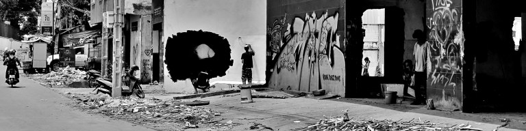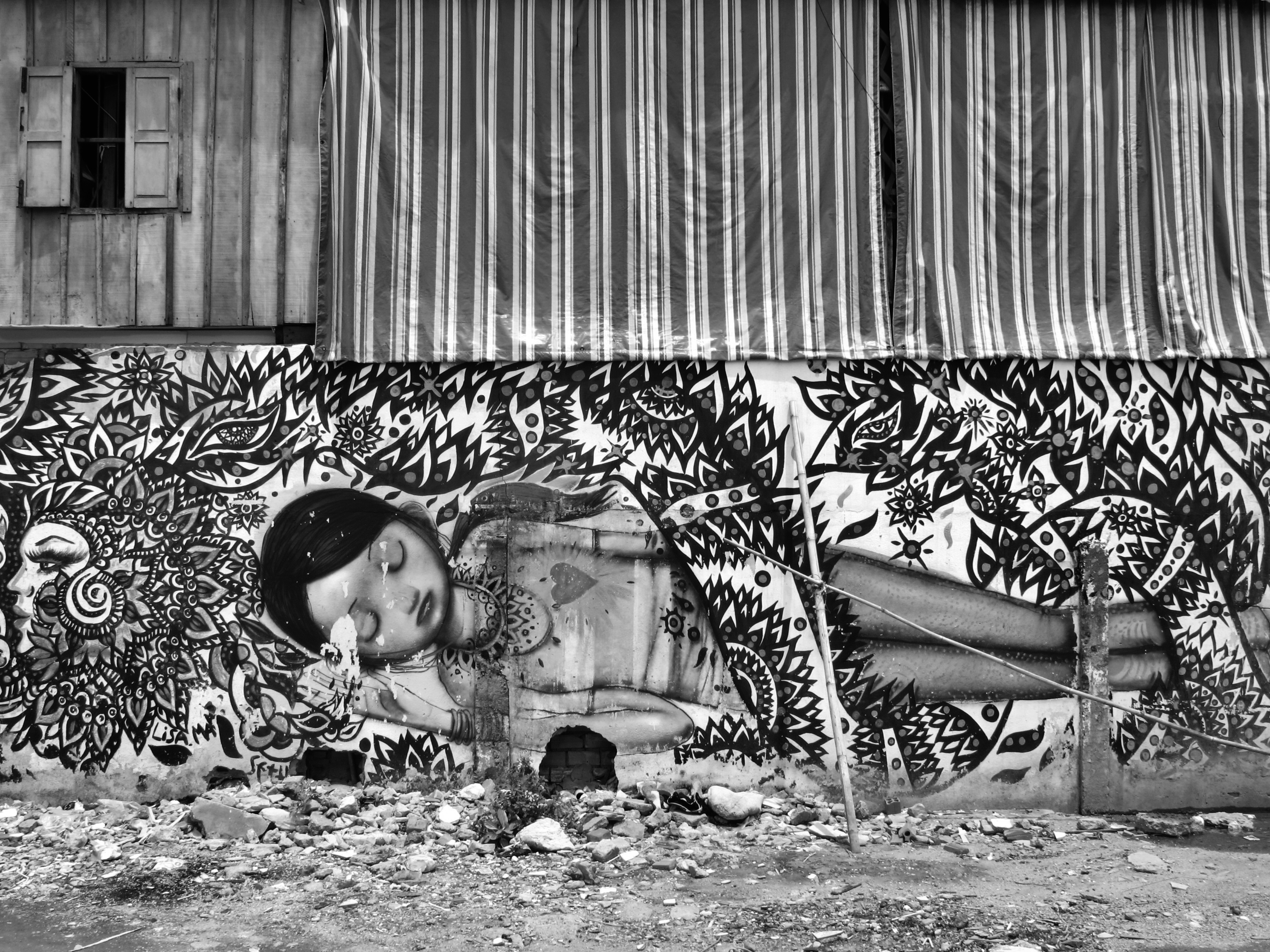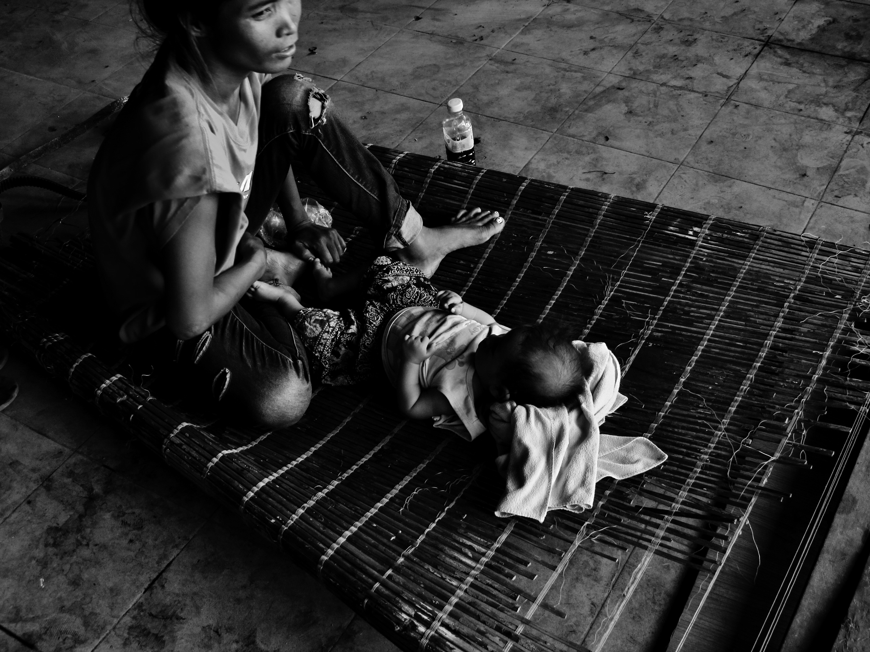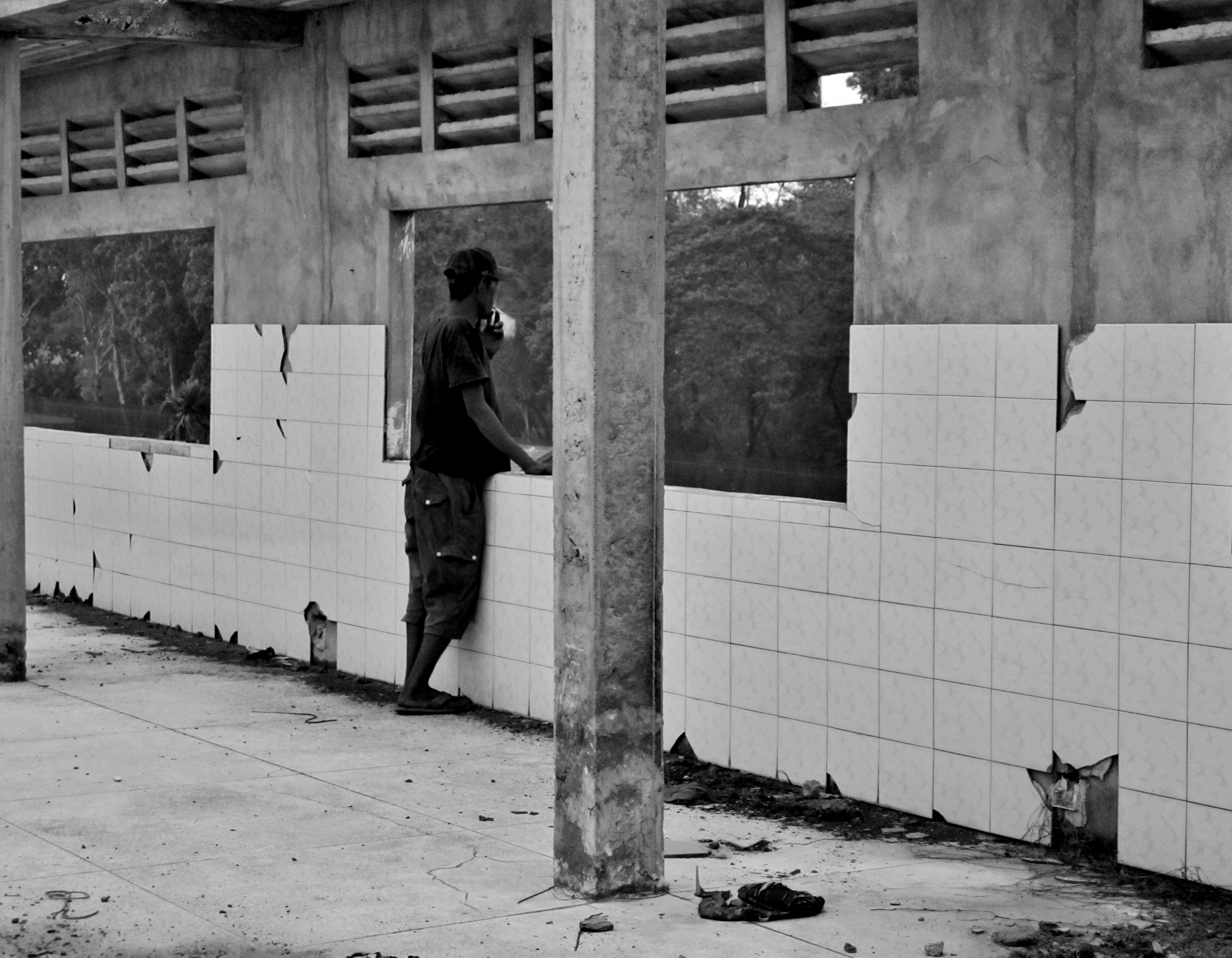 Boeung Kak is a strange place. Located in the center of the cambodian capital of Phnom Penh, it had the unique feature (for a city) of being a neighbourhood built around a beautiful lake. Crowds of young backpacker tourists were used to populate its margins, helping a vibrant local economy and its low-income population. Relaxed environment and sunsets on the lake were the common experience here, until the municipality sold it to a company owned by the wife of a ruling party’s senator. Since 2008 the lake had been filled with sand and is now a construction site for high-end buildings, somehow in standby, while around 4000 families (almost 20.000 people) were forcibly evicted from their homes. Nowadays, most of the tourism industry fled, depleting the local economy and the general mood of the community. Nevertheless, some travelers and expats still come and try to maintain the creative atmosphere that was going on in the old days, with street art still populating many walls. Meanwhile some buildings got vacant, with time and lack of maintenance turning them into shady and forsaken sites. That’s when some underpriviliged families started to live in them. This a glimpse of them and their way of living, in black-and-white as an attempt to balance the color on the walls and the lack of it on the ones living inside them.