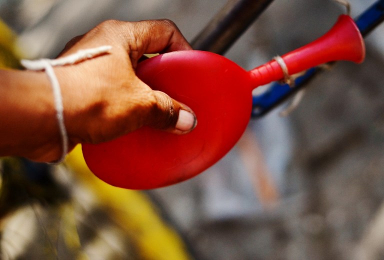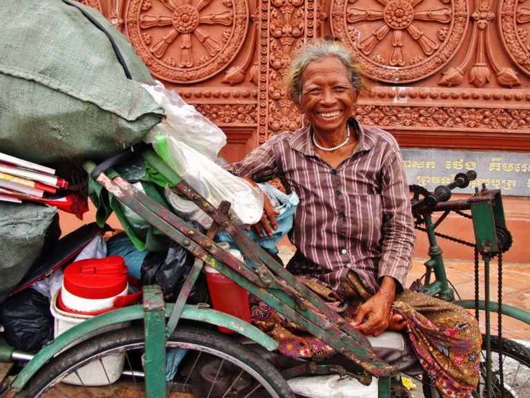 The call of edjai. It’s common in the streets of Phnom Penh hear the peculiar sound of home-made horns, used to signal their passing while walking on the streets with their handcart, with families coming out of their homes at that moment to sell whatever recyclable garbage they have.