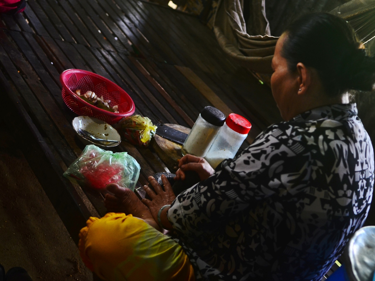 Kim Phúc (name changed for anonymity) preparing a traditional dish. She is a Vietnamese national now in her fifties, living in Cambodia and working as an edjai since she was nineteen. Somehow along the years she worked her way up the hierarchy from collecting trash in the streets to owning a major processing facility. It’s common in Cambodia the garbage industry being run by Vietnamese families, even if facing constant rights violations and discrimination from Cambodian society.