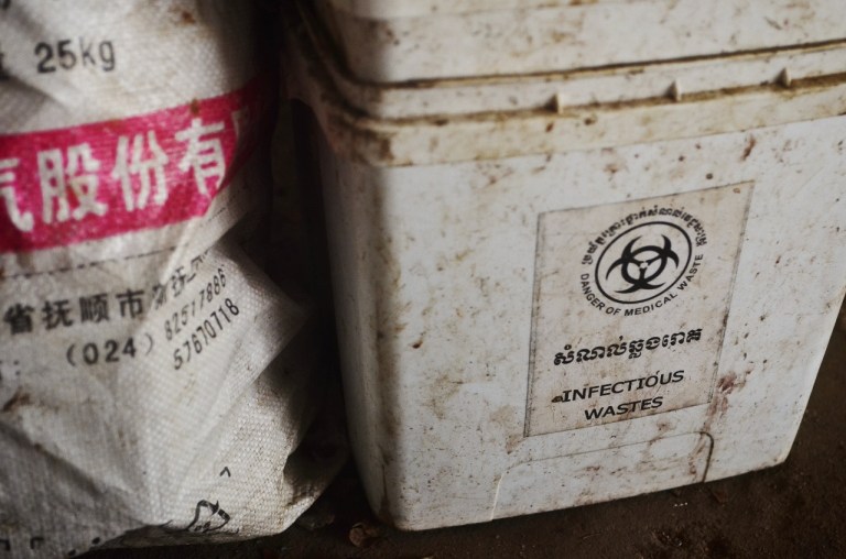 Hospital waste lying carelessly in a collection center among all sorts of other trash. One of the main consequences of the recycling system lacking an underlying structure from the government or private sector is that all waste is picked up equally. Meaning that hazard products or hospital garbage will be dumped in garbage containers or placed in the street like conventional trash, with the hordes of edjais that roam the streets looking for something valuable to sell ending up touching with their bare hands materials that can be infected, unsanitary or even toxic.