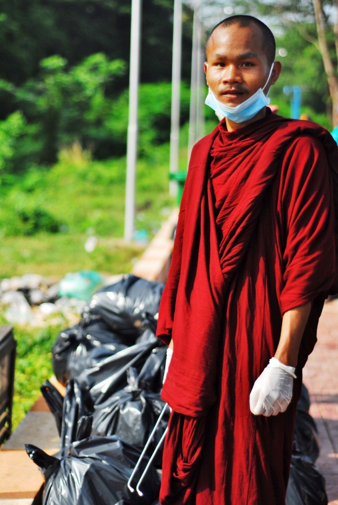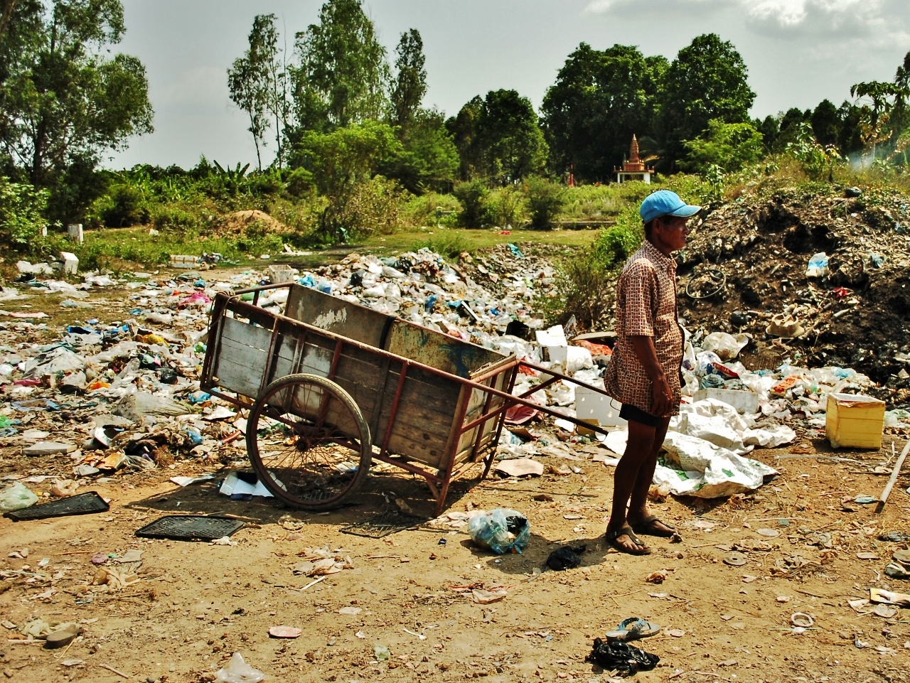 A monk joining a clean-up activity in the countryside, which was joined by government officials, students, the military and common citizens. The government is becoming more concerned about the waste problem, even if not directly due to a genuine ecological concern. Every monsoon season clogged draining systems lead to massive floods in major cities, with for instance a 100 million dollars investment from the national budget being announced for next year to renovate the wastewater treatment, drainage networks and road infrastructure to prevent more floods in the coastal town of Sihanoukville. Nevertheless, most of the work being put into recycling in this country is still done in a bottom-up scheme, dealt by hand, every day, by thousands of tireless edjais