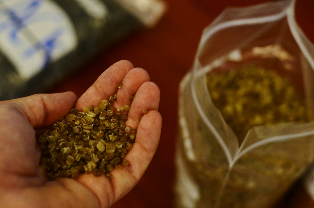 Some local projects are starting to tackle this issue, for instance reaching to these samples from a plastic waste recycling in Battambang city, which processes polyethylene and high density polyethylene by selecting, cleaning, cutting and melting the plastic into these chips. On a bigger scale, the japanese company Gomi Recycle 110, managed by expat Hiroya Kawai, is building two factories in the special economic zones of Phnom Penh and Svay Rieng, each one with the capacity to process two to three tonnes/day and transform it to eco-bricks for construction.