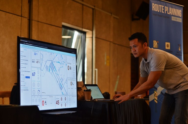 Borey Chum, a Cambodian national and CEO of Luma Systems, showing the software he’s currently developing. Looking into the future, this startup is designing an automatic recognition and mapping software that can help reduce the risks of dangerous trash being treated the same as conventional waste. Chum’s program, which in the future he hopes to be uploaded on drones that would fly around the city of Sihanoukville where he’s focusing the pilot, uses artificial intelligence and machine learning to recognize which kind of trash is on the street – medical waste, construction waste, household waste, etc. – in order to alert the municipal waste management company and plan smarter routes for their trucks accordingly to the dimension and type of garbage.