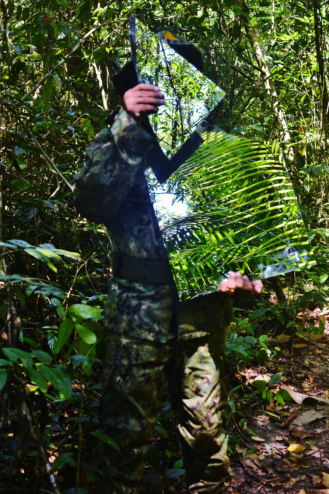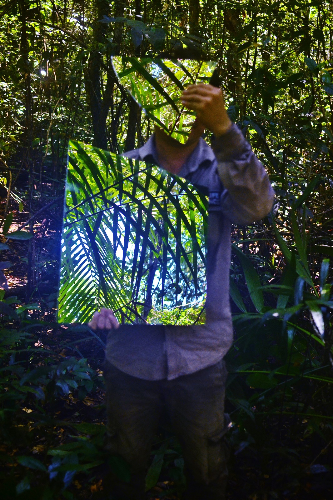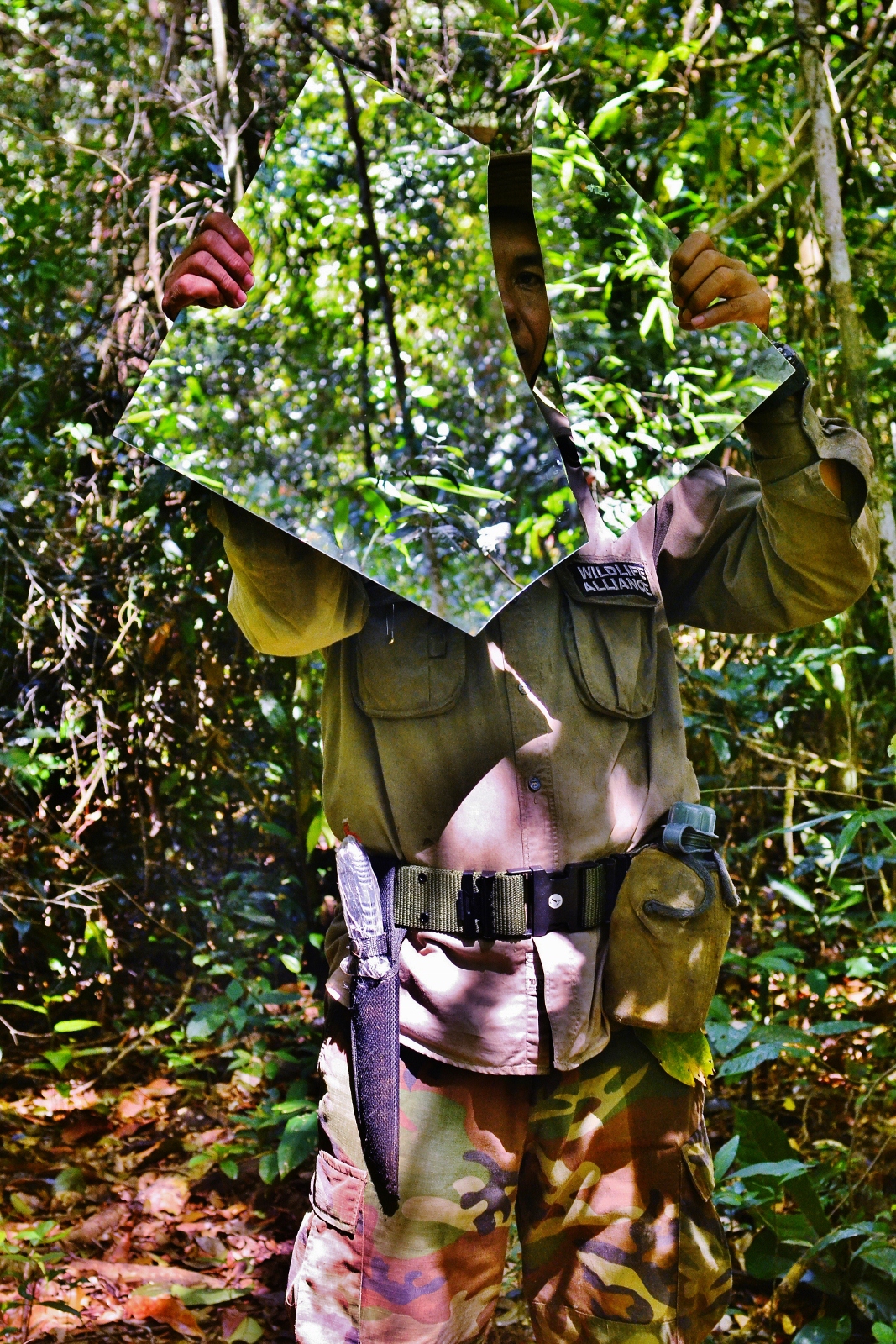This is a series of conceptual portraits of these former poachers turned into forest rangers. They are photographed holding pieces of broken mirrors in front of their faces with the reflection being the forest – as a symbol for their new care for nature, the breakthrough that led them to see beyond and keep the jungle on their minds.