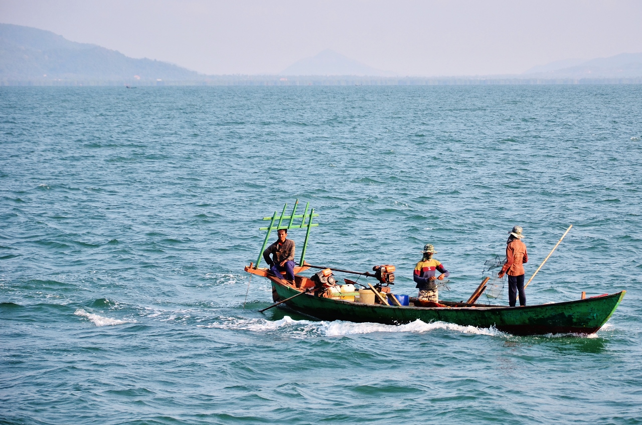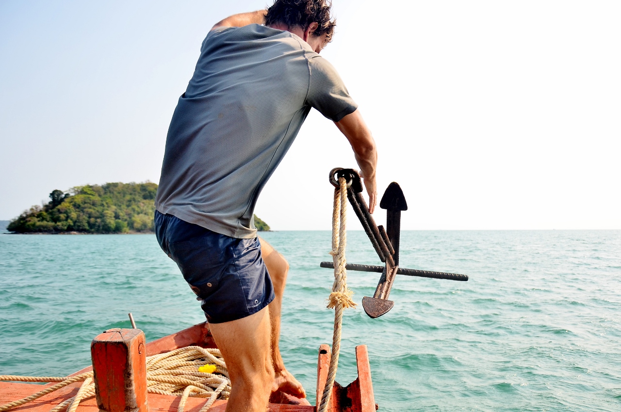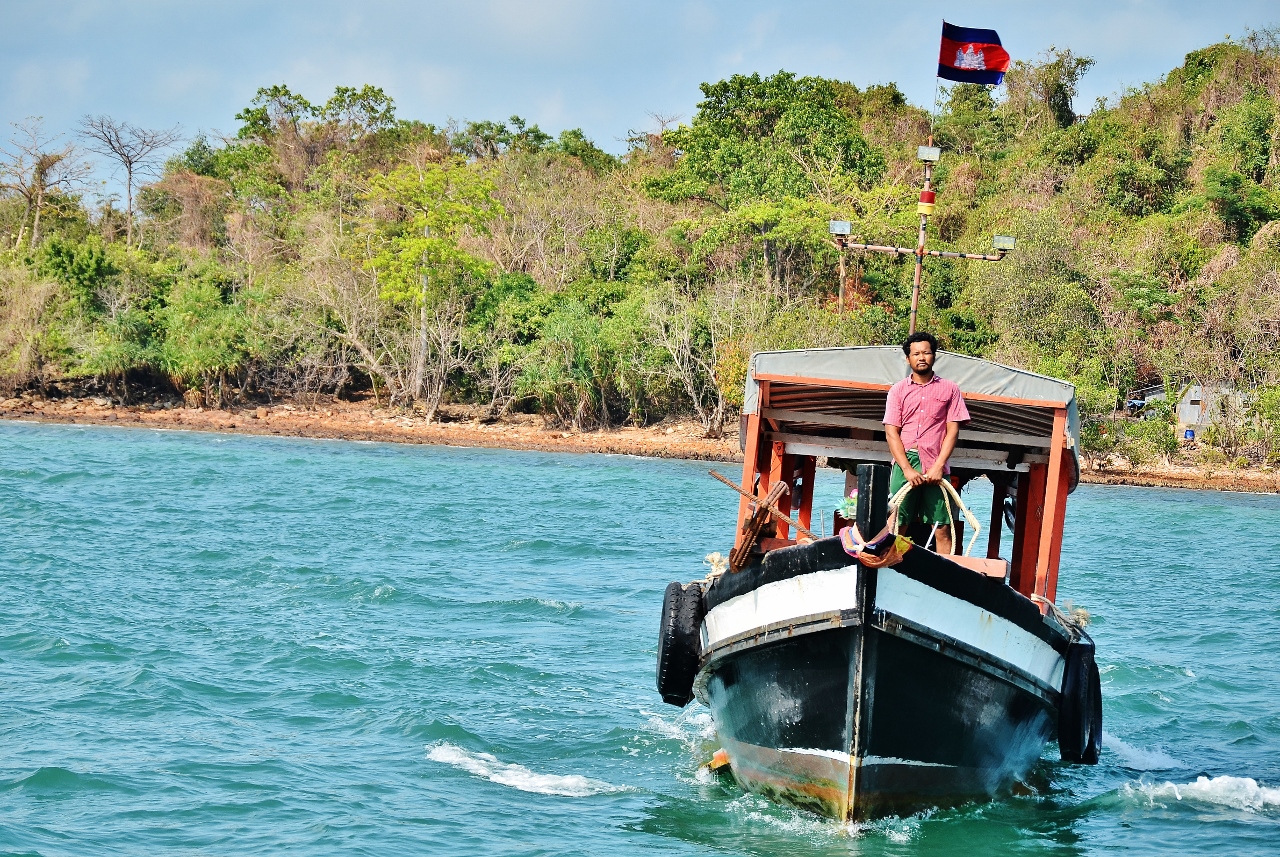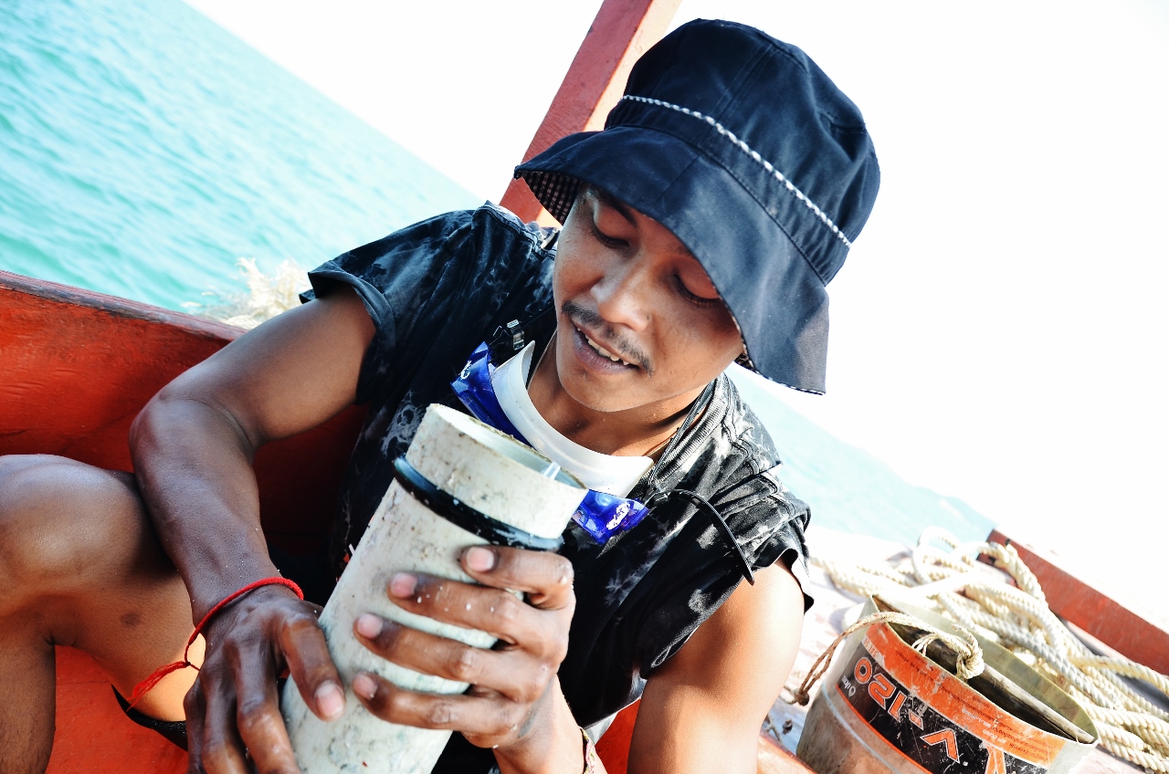 Samnang Ry, the boat captain, during a journey from Koh Ach Seh.