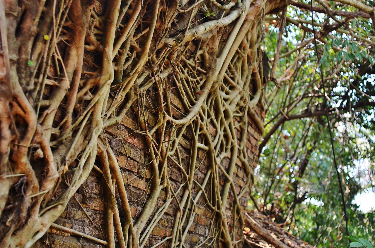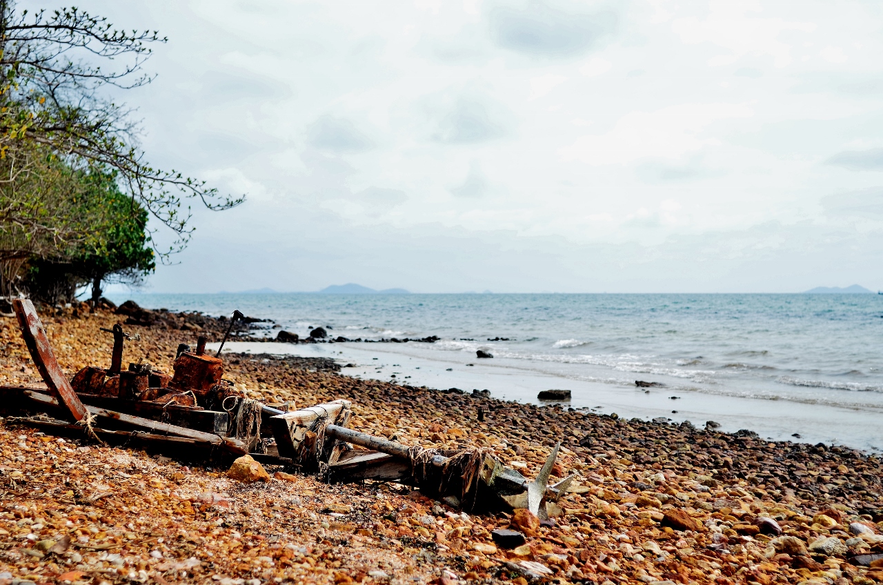 Trees in one of the beaches at Koh Ach Seh, where the leftovers of years of plastic pollution in the ocean can be seen.