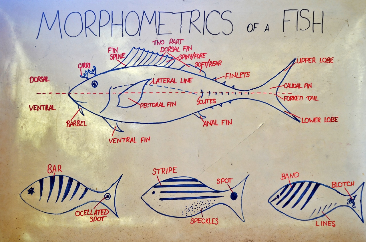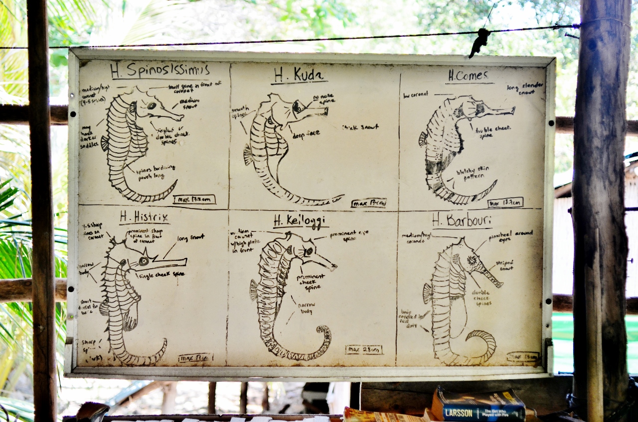 Lor Samphors, a seaweed specialist from the Royal University of Agriculture, going through a book of fish species.