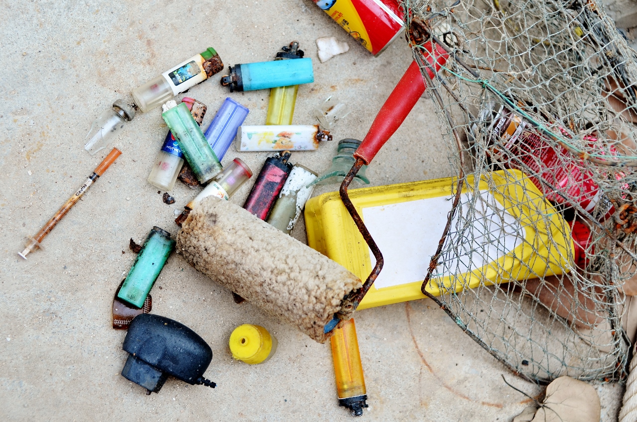 Team and volunteers carrying the trash collected at a beach cleanup in Koh Ach Seh. Considering the lack of options to deal with solid waste washed-up in the island’s beaches, everything needs to be incinerated to fight the increasing plastic and other ma