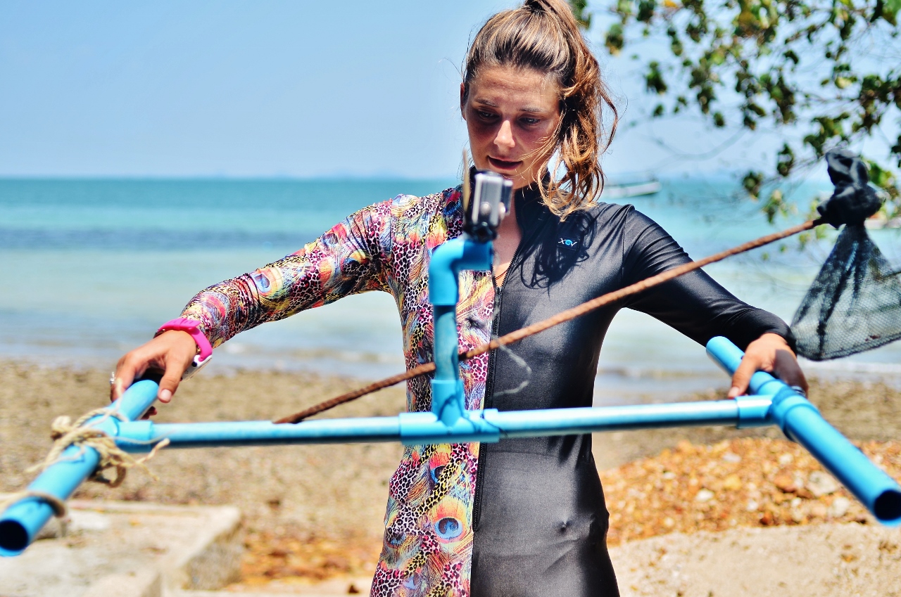 Being passionate about fighting against plastic waste due to her own project of recycling single-use plastics into bags and other accessories, Era joined a beach clean-up in Koh Ach Seh with the NGO’s team to better understand the scale of the problem of