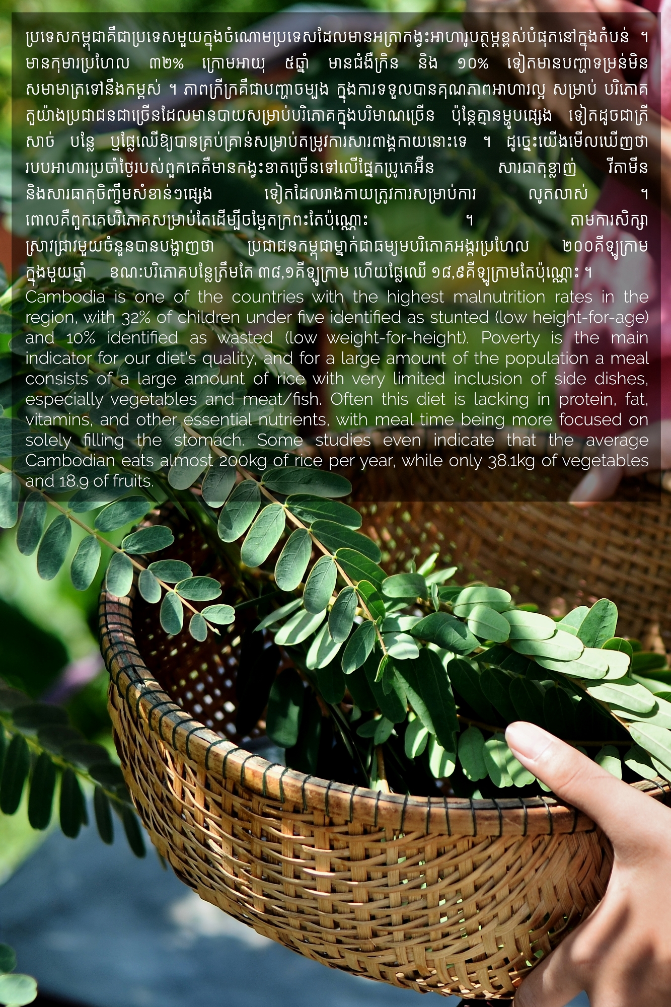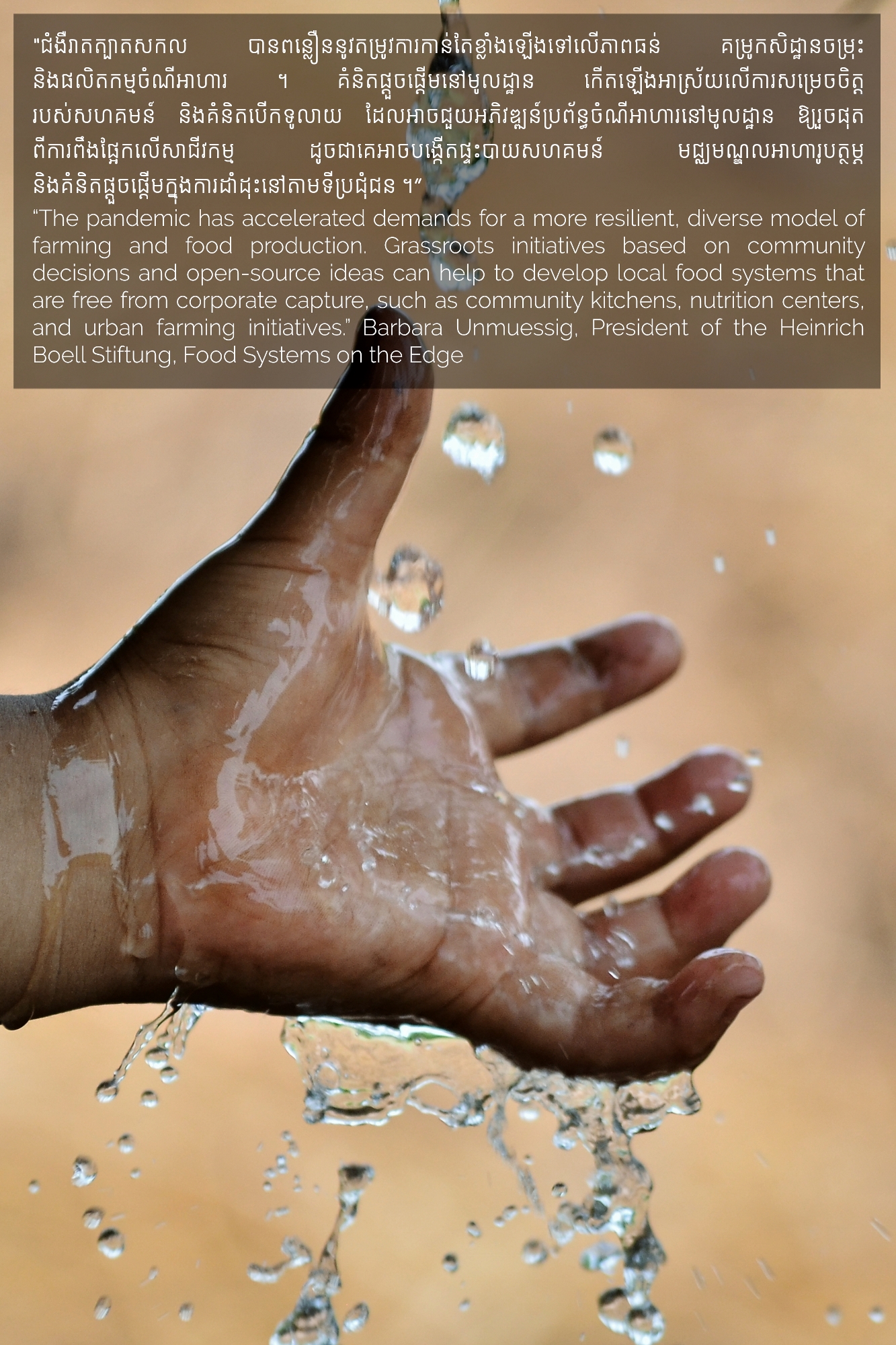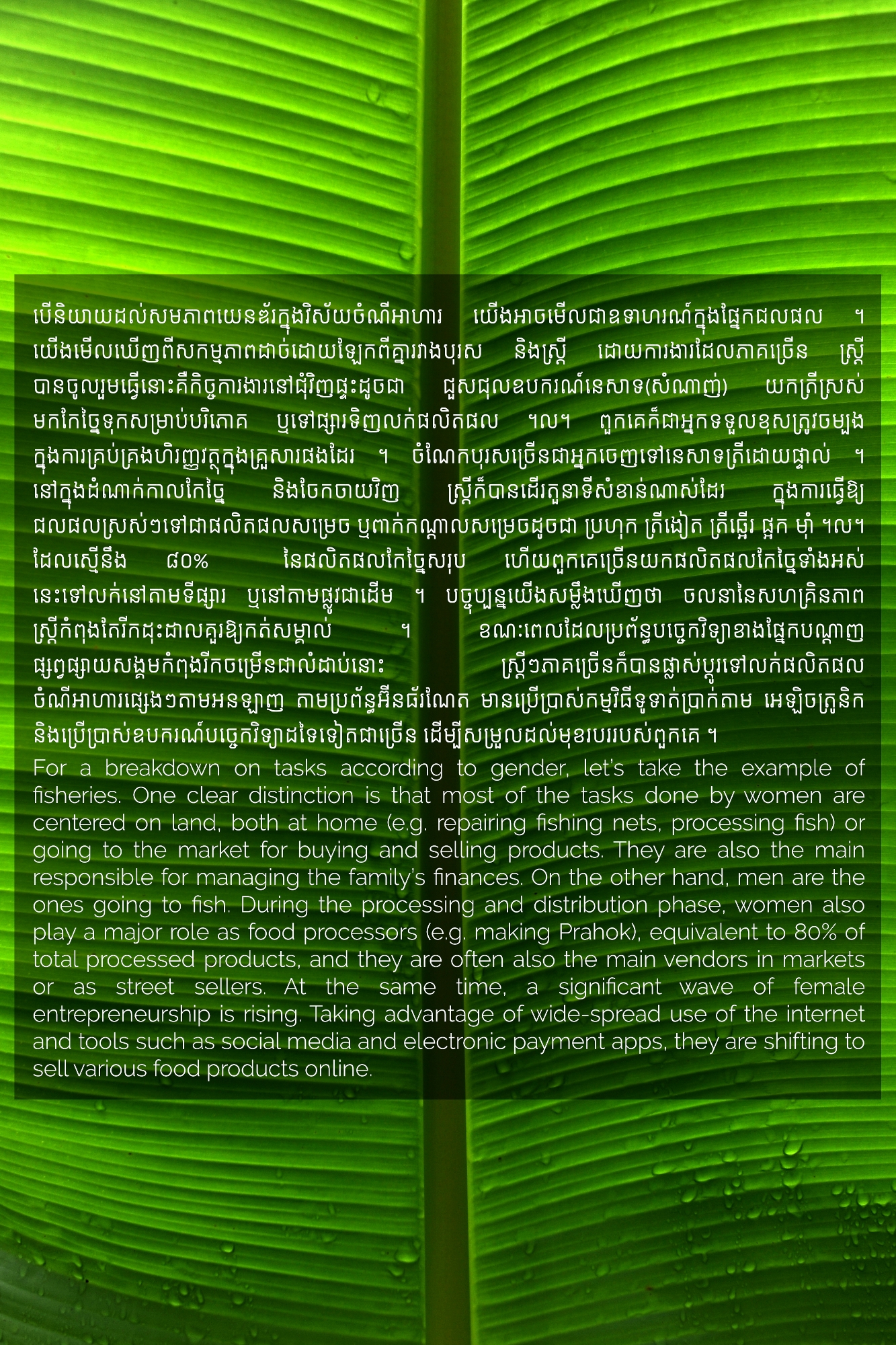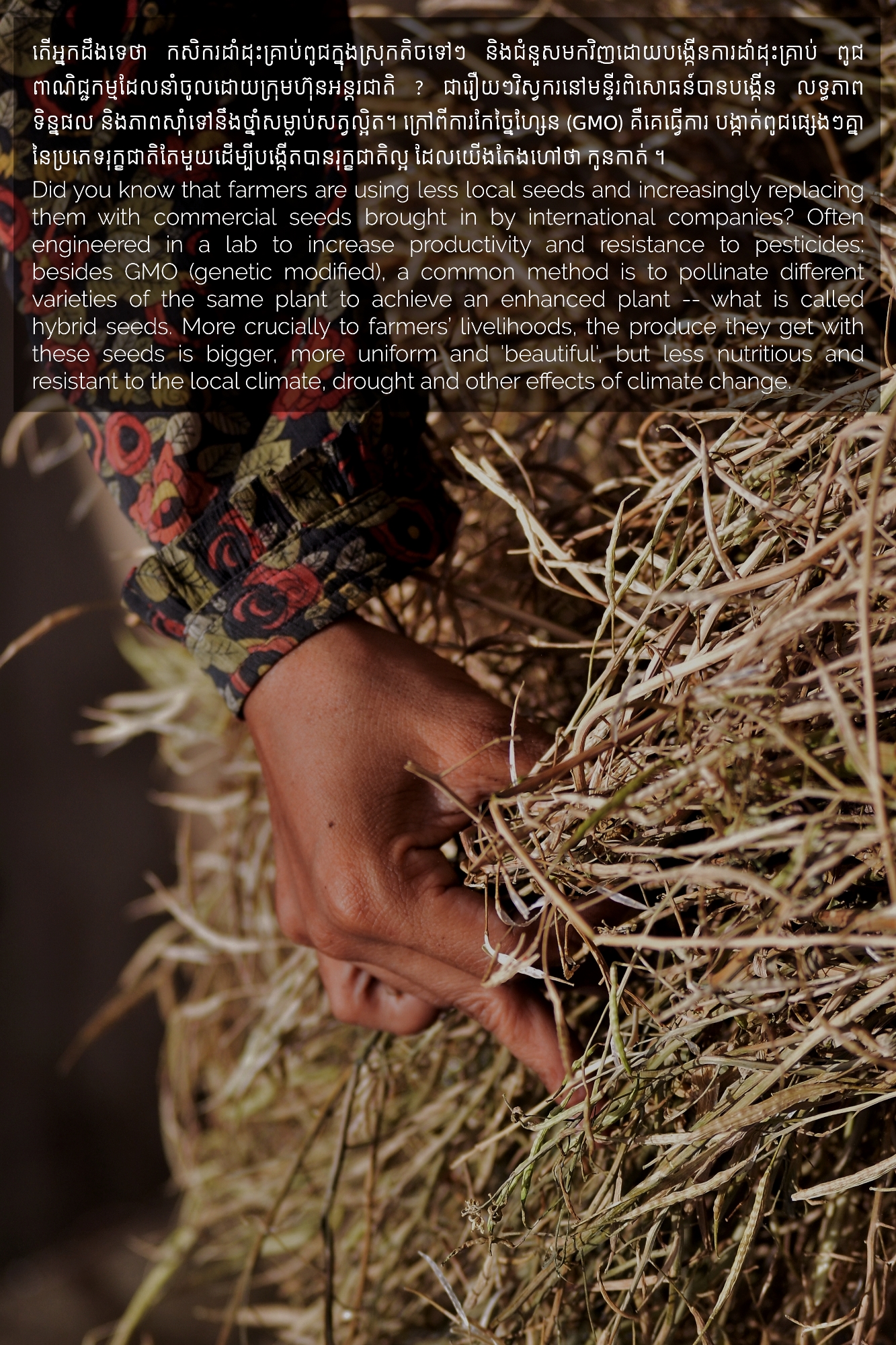 Part of MHOPe, a collaborative media project of Heinrich Böll Stiftung Cambodia on food systems in Cambodia, focusing on topics such as food security and the socio-economic aspects of nutrition, the origins of the ingredients we eat and the invisible lives of the workers along the food cycle. Using a Cambodian traditional dish (Samlor Korko) as a starting point of discussion, we follow each step from pre-production to waste management, addressing the themes of gender and sustainability. We believe we are what we eat and, to give more value to what ends up on our plate, we need to be aware of what’s happening along the way. From farm-to-table and from table-to-farm.
