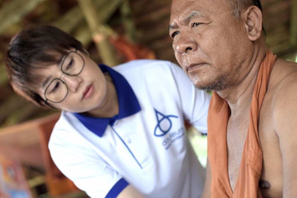 ‘A caring hand’, to mark the international cancer day, interwoven pictures done in collaboration with the civil-society organization DSF, a NGO providing crucial paliative care for terminal patients in Cambodia.