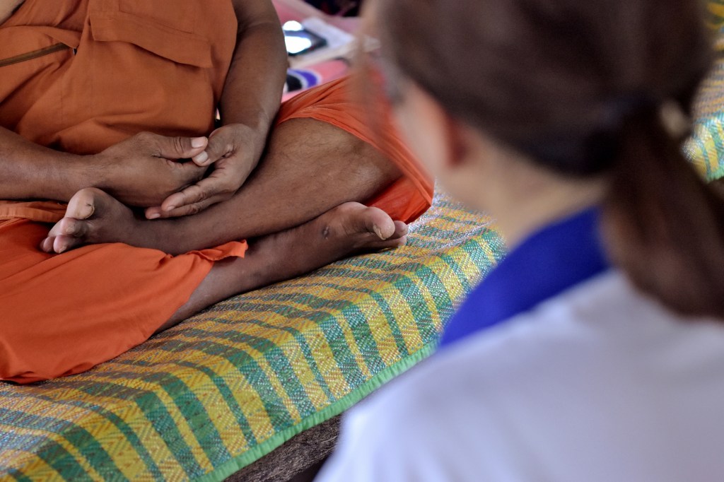 While taking these pictures, one of the aspects that got my attention were hands. The caregiver hands that bring relief to pain, and the patient’s hands, waiting patiently for an end, appreciating the last touches from loved ones. Not being able to do, to act in the world, but with wrinkles and calluses telling us all the life lived, the hard-written story of their gentle pushing against death, a survival with humble resistance against the cruelty of sickness and pain. And, at the same time, I hope these pictures can function as a homage to the health professionals, all the doctors and nurses from DSF and partner medical facilities. Tirelessly working to make the life of others a little bit better, their existence a little easier, less painful, perhaps more meaningful. The gift of a dignified end. Through both medication and calming words, counselling both patient and family on how better to write this last chapter.
